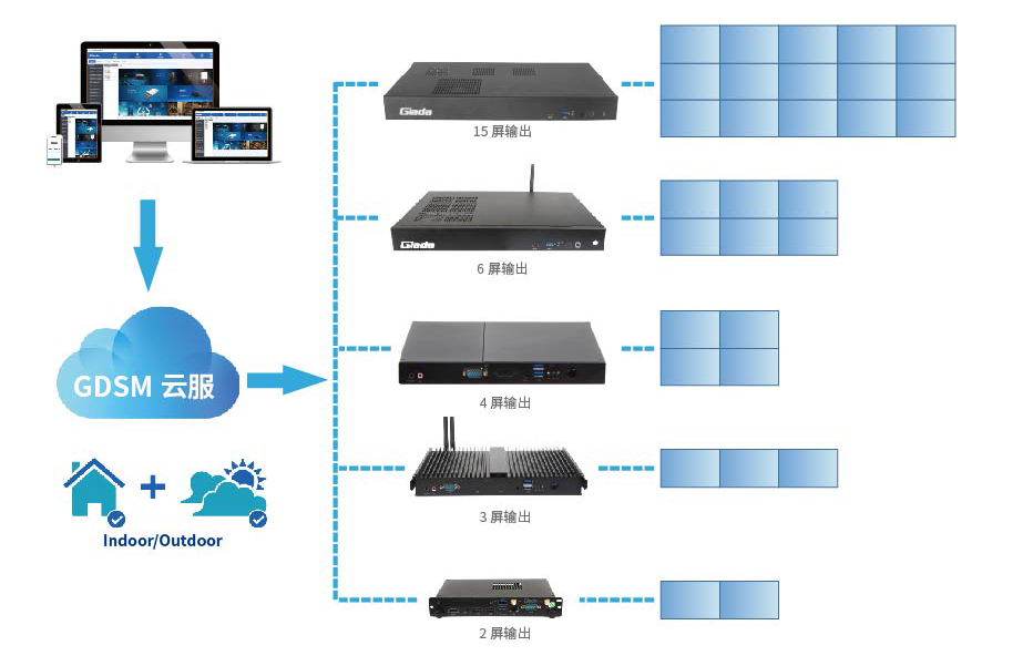 沐鸣娱乐GDSM系统兼具信息发布、拼接管理、人脸识别、大数据分析及远程控制五大功能,可以帮助餐厅便捷高效的实现广告内容的发布更新,同时借助AI人脸识别和大数据分析技术,实现智慧化精准广告推送,增强顾客消费体验。该系统支持多种媒体格式,以及多种媒体格式资源的同时播放,这为多屏拼接内容播放的同显和异显提供了保证,可满足餐厅多样化的播放需求。